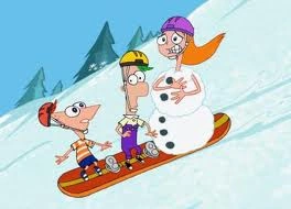 - Phineas und Ferb fahren mit dem Snowboard gegen einen Schneemann und einem Baum, haben diese jedoch verfehlt.